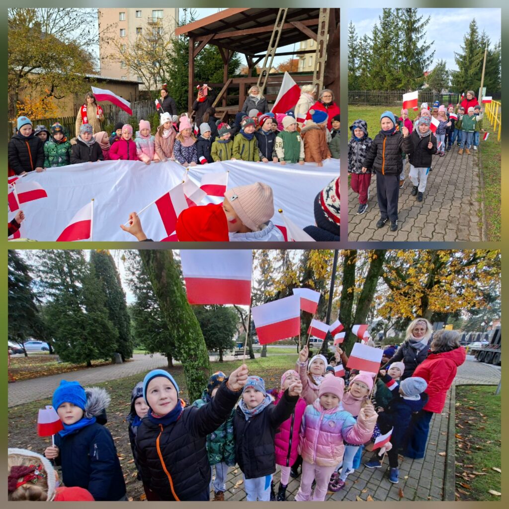 Dzień 11 listopada to jedna z najważniejszych dat w historii naszej Ojczyzny. Po wieloletniej niewoli Polska odzyskała niepodległość. W przedszkolu od najmłodszych lat uczymy dzieci patriotyzmu, przywiązania do swojej Ojczyzny, do ziemi rodzinnej, wpajamy szacunek dla polskich symboli. W przededniu święta „Kropelki” ogólnopolskiego projektu „Zareklamuj Polskę”, wzięły udział w przemarszu ulicami miasta pod obelisk ku czci Marszałka Józefa Piłsudskiego, gdzie wspólnie z kolegami z innych grup, odśpiewały hymn narodowy. W kolejnych dniach dzieci obejrzały montaż słowno-muzyczny i aktywnie uczestniczyły w akcji ogólnopolskiej: „Szkoła do hymnu”, a przedstawicielka grupy wzięła udział w gminnym konkursie recytatorskim „Strofy o Ojczyźnie”.
