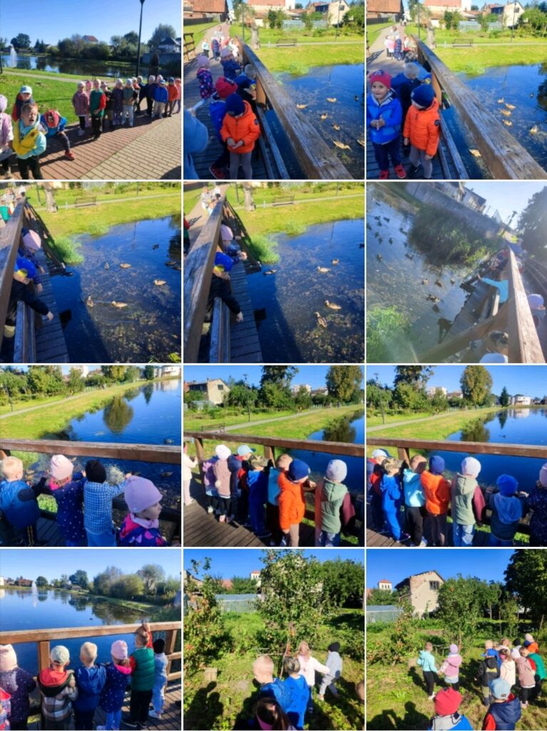 W POSZUKIWANIU JESIENI Spacer nad pobliski staw, inspirowany opowiadaniem „Odkrywamy jesienne tajemnice natury”. Zbieranie darów natury, karmienie kaczek.