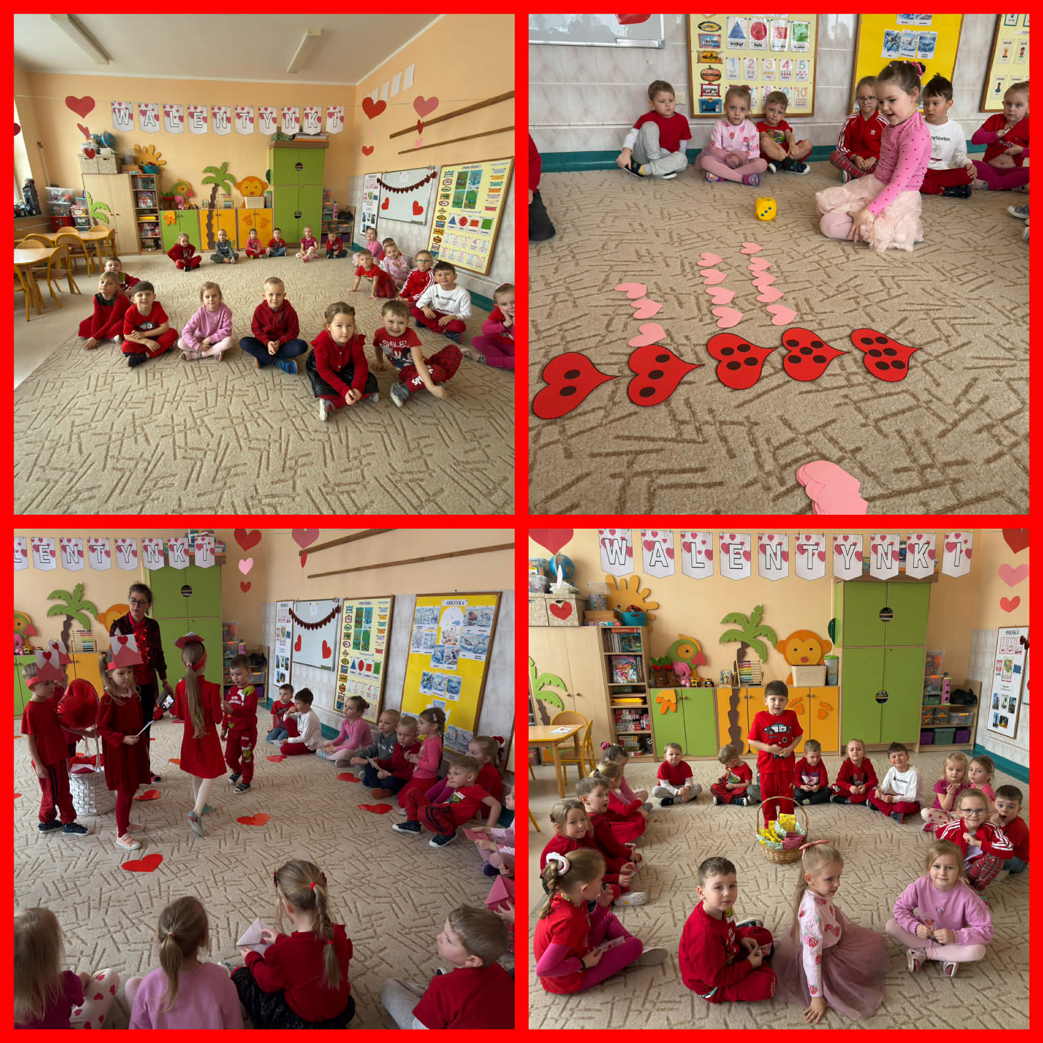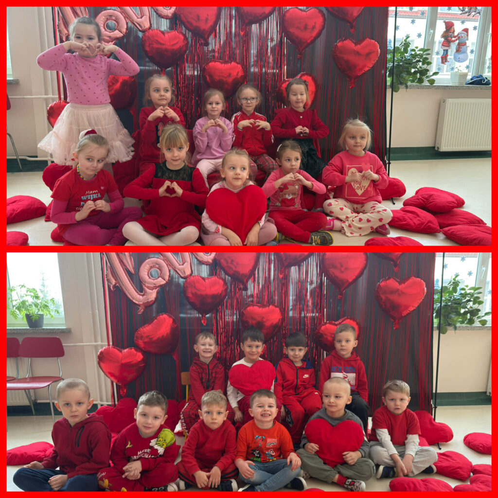 13 lutego w naszym przedszkolu obchodziliśmy Walentynki – wyjątkowy dzień, który przypomina, jak ważne są przyjaźń, życzliwość i dobre serce. Dzieci uczestniczyły w radosnych zabawach, a przedszkole wypełniło się czerwienią, różem, pocztą walentynkową i uśmiechami. Na Rumianki czekała także miła niespodzianka – balony oraz słodkie lizaki, przygotowane przez mamę Elizki, które sprawiły dzieciom wiele radości i były pięknym akcentem tego dnia.