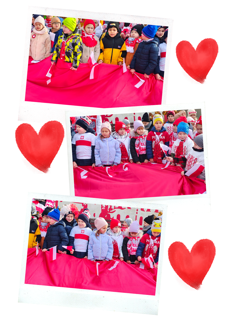 6 listopada 2025 roku, Stokrotki wraz z innymi dziećmi z naszego przedszkola wzięły udział w uroczystym marszu ulicami miasta z okazji Święta Odzyskania Niepodległości. Przedszkolaki wyposażone w biało- czerwone elementy ubioru oraz flagi z dumą maszerowały, śpiewając patriotyczne piosenki. Po dotarciu do Obeliska pamięci Marszałka Józefa Piłsudskiego dzieci zapaliły znicze, a następnie wszyscy uczestnicy marszu odśpiewali Hymn Polski przy murale znajdującym się na ścianie budynku MGOK w Białej Piskiej. Wydarzenie to miało na celu kształtowanie postaw patriotycznych oraz przybliżenie najmłodszym znaczenia Święta Odzyskania Niepodległości.