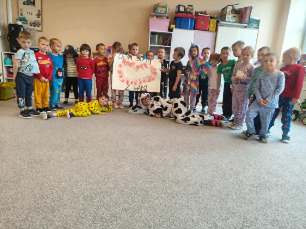 Dzień Piżamy w przedszkolu, to przede wszystkim dzień zwrócenia uwagi na zdrowie i empatię. Wiemy jak ciężko jest dzieciom, rodzicom oraz bliskim rodziny, której dziecko chorowało lub choruje na nowotwór lub inne choroby.Dla wielu piżama stała się nieodłączną częścią codzienności. To co dla nas jest związane z odpoczynkiem i spokojem dla innych jest symbolem walki o zdrowie i życie. W dniu dzisiejszym nasze przedszkolaki chciały w ten sposób okazać wsparcie wszystkim najmłodszym pacjentom i ich rodzinom poprzez zmianę zwykłych ubrań na piżamę. Wprowadzeniem do obchodów dzisiejszego Dnia Piżamy było czytania bajeczki „Kicia Kocia jest chora”. Dzieci zastanawiały się, jak można pomóc chorym dzieciom i co można robić, żeby nie zachorować. W tym dniu nie zabrakło również zabaw przy muzyce dyskotekowej, zabaw relaksacyjnych oraz sensorycznych. Każdy przedszkolak projektował też swoją wymarzoną piżamę.To był niezapomniany dzień w przedszkolu, pełen radosnych wrażeń i emocji.