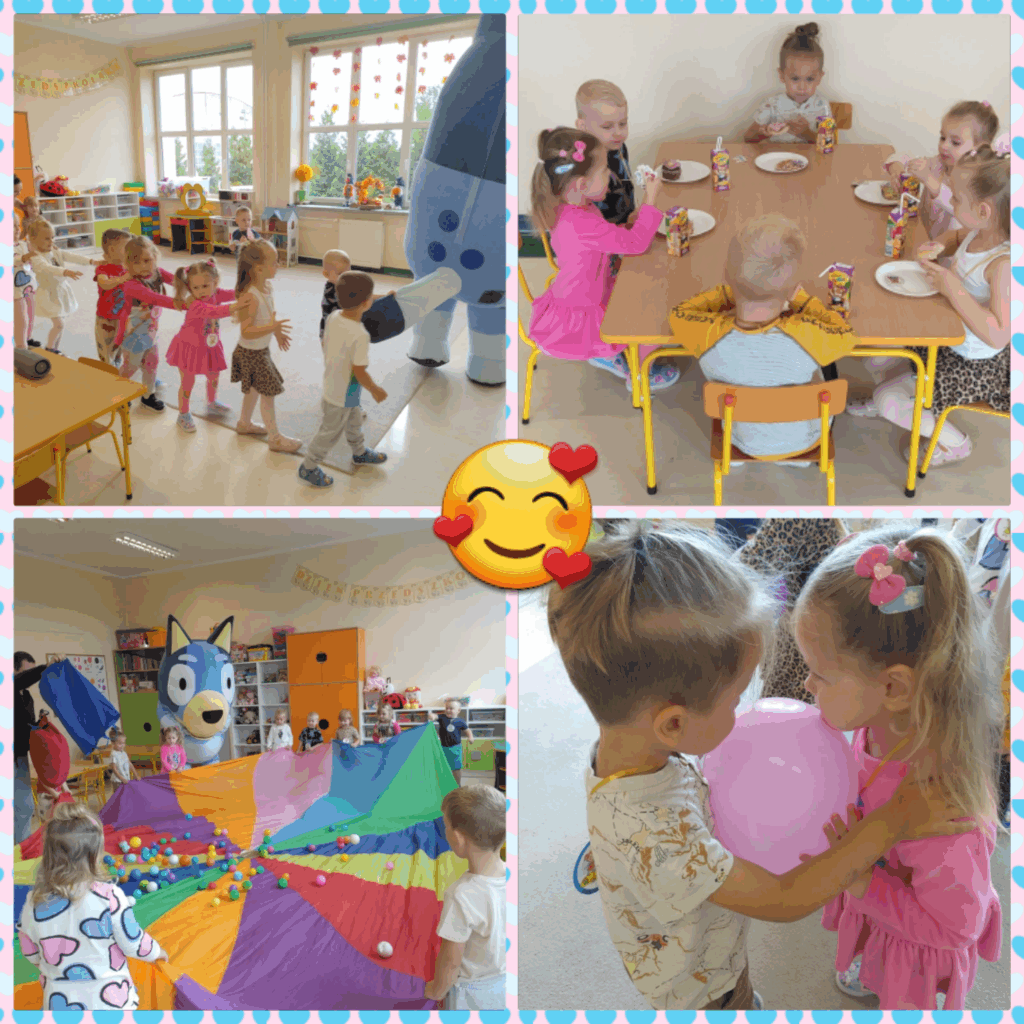 W naszej placówce wspólne świętowanie zorganizowaliśmy 15 września. Maluszki świętowały w swoich salach, a starsze dzieci spotkały się na palcu przedszkolnym, gdzie spędziły czas na specjalnych zabawach, konkursach i atrakcjach, takich jak spotkanie z Bluey, czy „Piana party”…. Podejmowane aktywności sprawiły, że Święto Przedszkolaka było dla wszystkich wyjątkowe i niezapomniane.