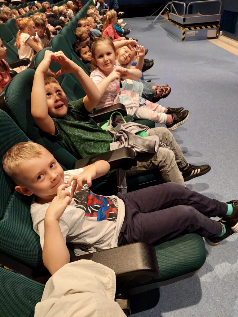23 września „Kropelki” i „Pszczółki” wybrały się na autokarową wycieczkę do Grajewskiego Centrum Kultury. Przedszkolacy obejrzeli przedstawienie pod tytułem: „Baśnie znane i lubiane” w wykonaniu aktorów Teatru Artenes z Wrocławia. Spektakl przygotowany został z myślą o zapoznaniu dzieci z mniej popularnymi baśniami J. Ch. Andersena: „Latający kufer” i „Świniopas”. Gospodarzem spektaklu był Ole Zmruż-oczko, opowiadający co wieczór coraz to nowe bajki na dobranoc. Poszczególne baśnie zostały przedstawione jako odrębne historie, tak aby przekazać widzom jasny, aktualny także dziś morał. W spektaklu wykorzystano wiele zaskakujących efektów, a melodyjne piosenki, śpiewane przez bohaterów poszczególnych baśni, bardzo przypadły do gustu młodych widzów.